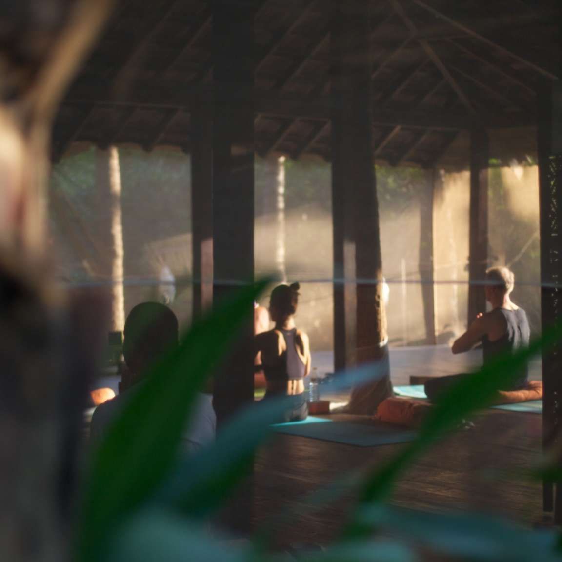 Each morning opens with meditation and journaling, moving into asana and movement exploration — practices that soften the body and settle the mind before the day begins.