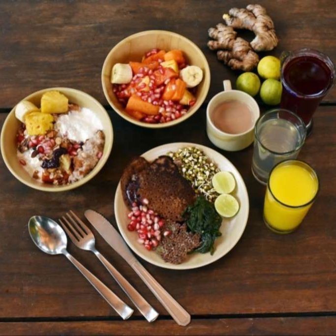 Two meals a day from Ashiyana's celebrated kitchen — a post-yoga brunch and evening dinner. Locally sourced, beautifully prepared. Masala chai, ginger lemon and herbal teas available throughout the day.